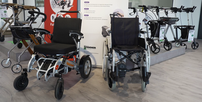 - • Gehhilfen, Rollatoren und Rollstühle