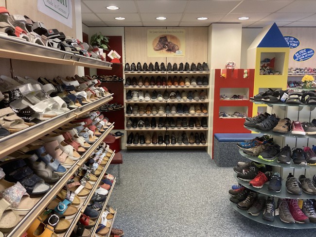 Auf der Verkaufsfläche finden die Kund:innen ein umfangreiches Angebot an Kinder-, Damen- und Herrenschuhen. Besonders hervorzuheben ist die große Auswahl an Bequemschuhen sowie das breit gefächerte Sortiment an Schuhen für Kleinkinder. Speziell während der Wachstumsphase ist es sehr wichtig, jenen Schuh zu wählen, in dem sich das Kind wohlfühlt und der Fuß sich natürlich entwickeln kann.